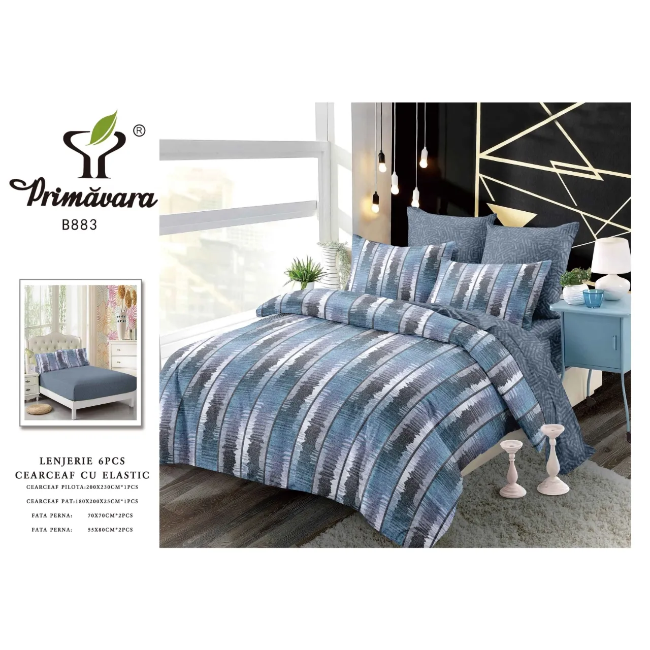 Lenjerie de Pat Bumbac Finet 6 Piese cu Elastic - CPL182