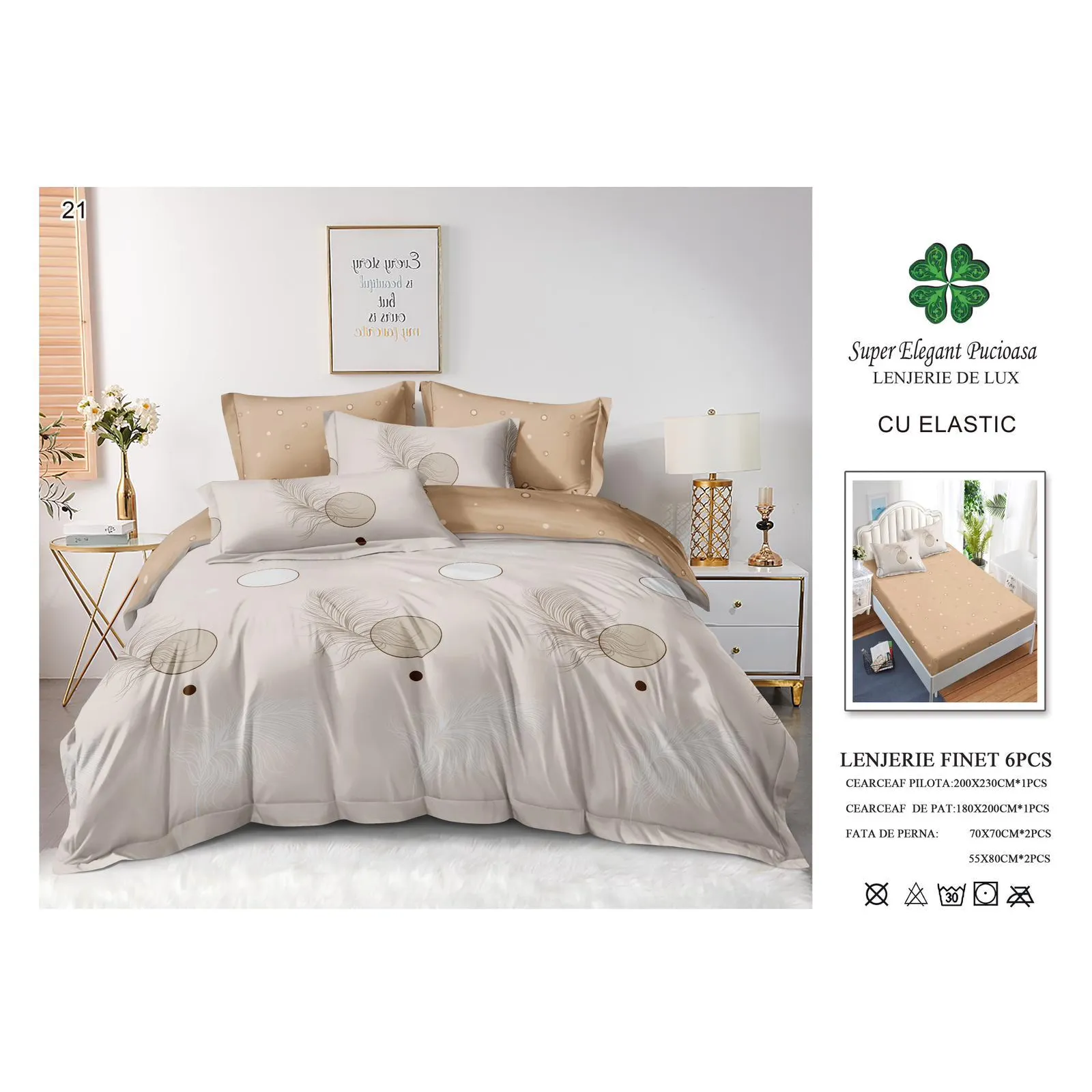 Lenjerie de pat Bumbac Finet 6 piese cu elastic -PUC26