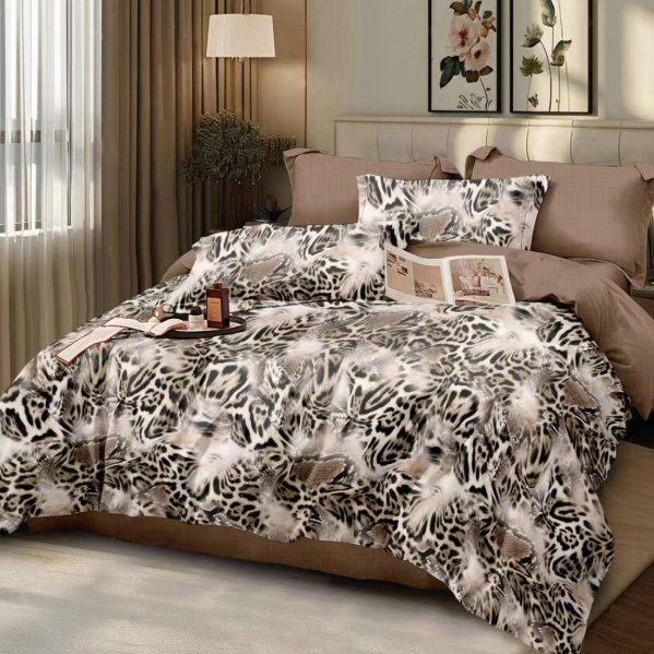 Este moale, ceea ce aduce o nota de confort. Cu toate acestea este si un material dur, asa ca in timp nu se deterioreaza atat de usor si pastreaza rezistenta si la culorile, design-ul unei lenjerii. Lenjeriile de pat dublu cu imprimeu sunt realizate folosind reactivi astfel ca nu vor iesi culorile la spalare. Materialul este bumbac finet-satinat cu o greutate de 215 gr / mp.