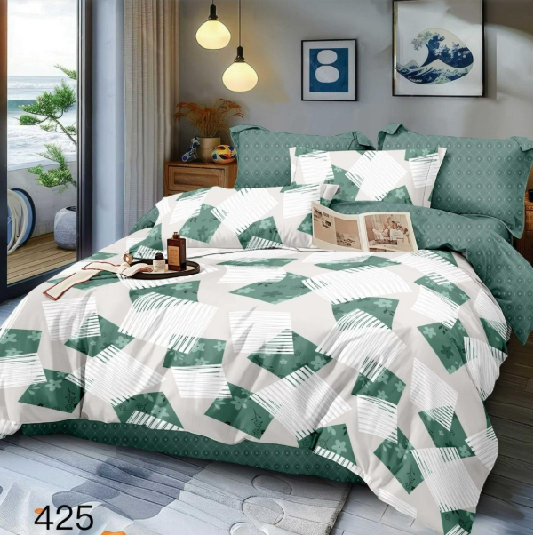 Lenjerie de Pat pentru 2 persoane cu 6 piese confectionata din Bumbac Finet.