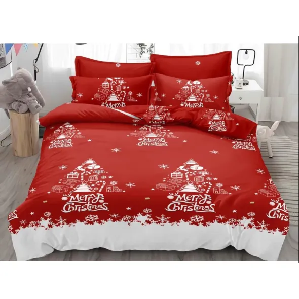 Lenjerie de pat cu imprimeu modern, cu Mos Craciun.