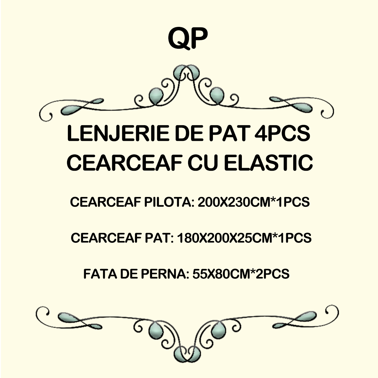 • Cearsaf de pat cu elastic::180×200  cm (pentru saltele de 20-25 cm).