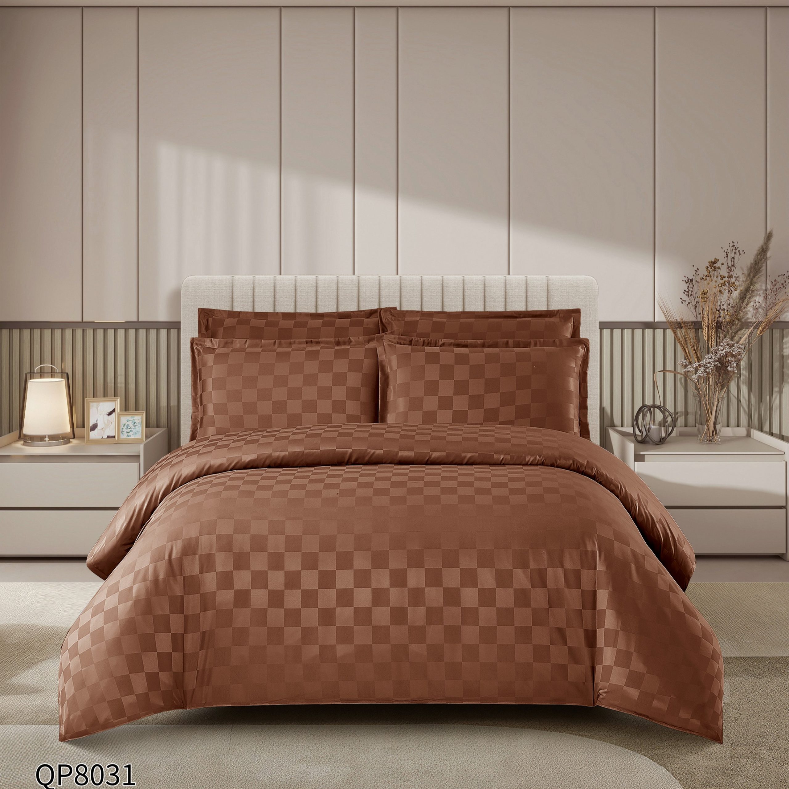 Lenjerie de Pat Damasc Finetat, cu Elastic, 4 Piese, Maro - QP8031