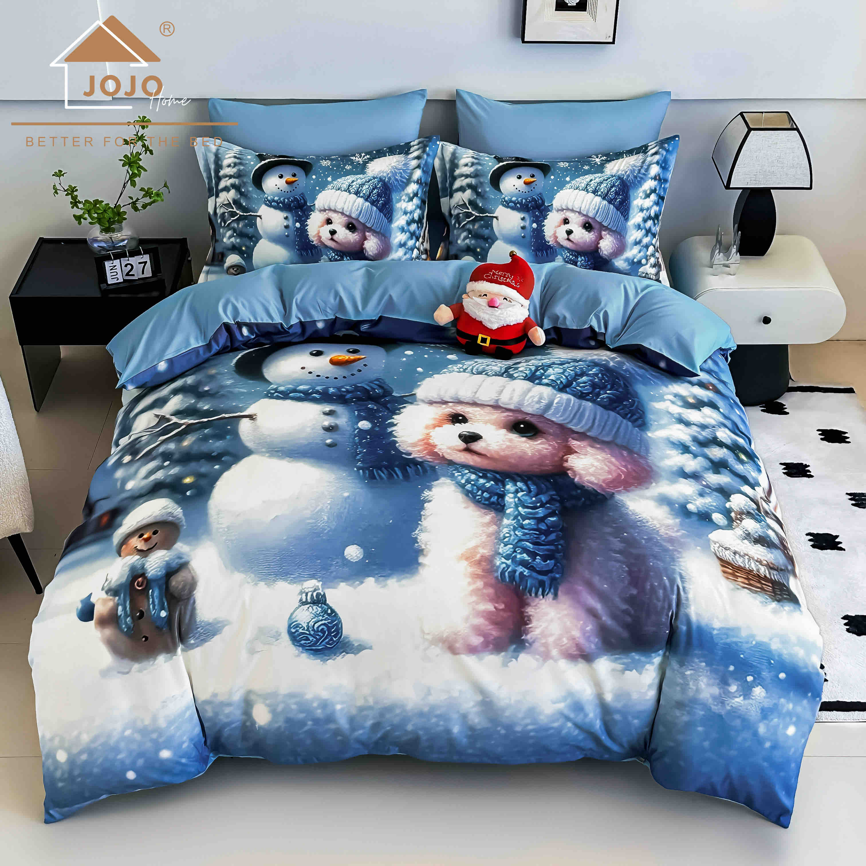 Lenjerie de pat de Craciun cu 6 Piese din finet, cu imprimare digitala 5D, Model JOJO8004