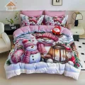 Lenjerie de pat de Craciun cu 6 Piese din finet, cu imprimare digitala 5D, Model JOJO8010