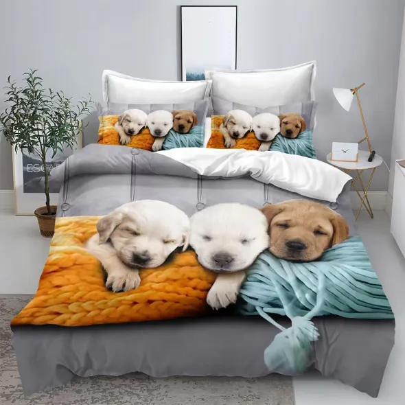 Lenjerie de pat din bumbac finet 6 piese cu imprimeu 3D