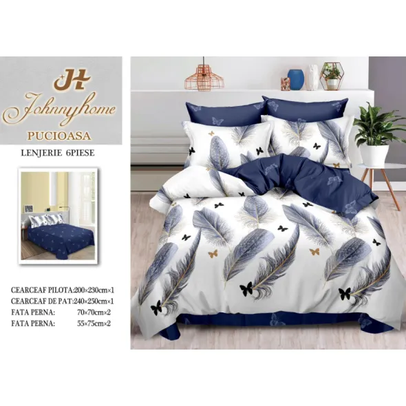 Lenjeria de pat din Bumbac Finet, datorita materialelor naturale de exceptie si a tesaturilor fine executate aceasta lenjerie este foarte rezistenta si va putea face parte din dormitorul tau pentru o perioada lunga de timp, fara sa isi pierda din stralucire si din luminozitatea.