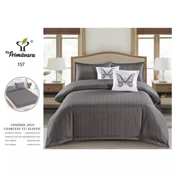 Lenjerie de Pat Dublu Cu Elastic- 100% Bumbac Damasc 6 Piese
