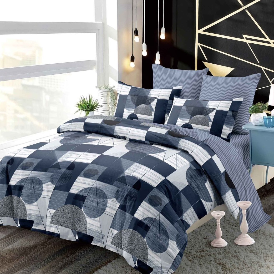 Lenjerie de pat realizata din bumbac finet - 6 Piese (cearsaf de pat cu elastic)