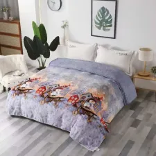 Designul specific de Crăciun este vibrant și festiv, cu elemente precum fulgi de zăpadă, reni, brăduți sau alte motive de sărbătoare, toate în culori clasice de roșu, alb, verde sau albastru, care completează atmosfera magică de sărbători. Dimensiunile generoase (200x230 cm) fac pătura ideală pentru a fi folosită pe un pat matrimonial sau pe canapea, aducând o notă decorativă aparte în locuința ta.