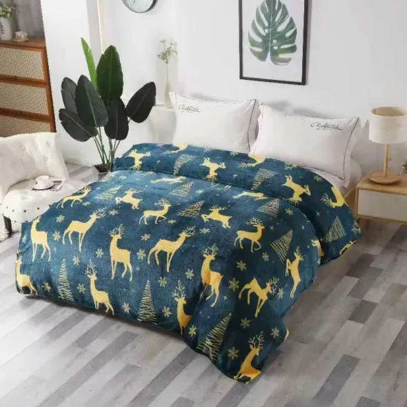 Designul specific de Crăciun este vibrant și festiv, cu elemente precum fulgi de zăpadă, reni, brăduți sau alte motive de sărbătoare, toate în culori clasice de roșu, alb, verde sau albastru, care completează atmosfera magică de sărbători. Dimensiunile generoase (200x230 cm) fac pătura ideală pentru a fi folosită pe un pat matrimonial sau pe canapea, aducând o notă decorativă aparte în locuința ta.