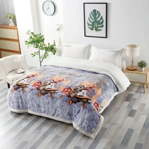Patura de pat cu imprimeu modern, cu Mos Craciun.