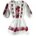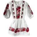Rochie traditionala alba din bumbac cu maneca 3/4 cu elastic si motiv traditional rosu