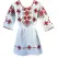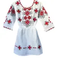 Rochie traditionala alba din bumbac cu maneca 3/4 cu snur si motiv traditional rosu