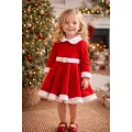 • Rochiță roșie din material catifelat, cu inserții de blăniță albă