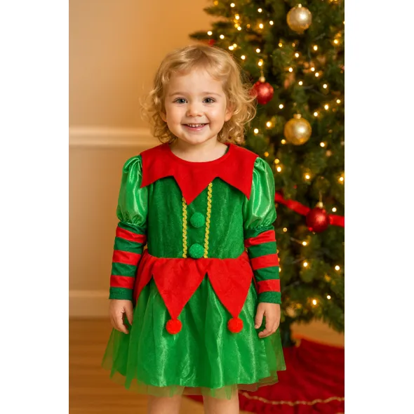 Această rochiță adorabilă de spiridușă este perfectă pentru serbările de Crăciun, petreceri tematice, colinde sau ședințe foto. Realizată din materiale fine și pline de culoare, rochița combină nuanțe clasice de verde și roșu, alături de accente festive care îi oferă un farmec de poveste. Croiala lejeră și detaliile atent lucrate oferă confort, libertate de mișcare și un look spectaculos.