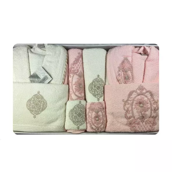 Halate de baie confectionate din bumbac 100%, cu o consistenta generoasa de 450gr./mp, din frotir moale si absorbant. Halatele au marimi universale (potrivite pentru aproape orice silueta) si se leagă cu ajutorul unui cordon