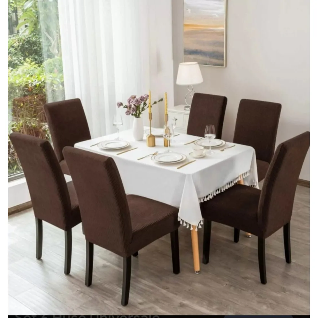 Set 6 huse scaune fara volane, Lycra, 55 x 45 cm, Maro - AHM32