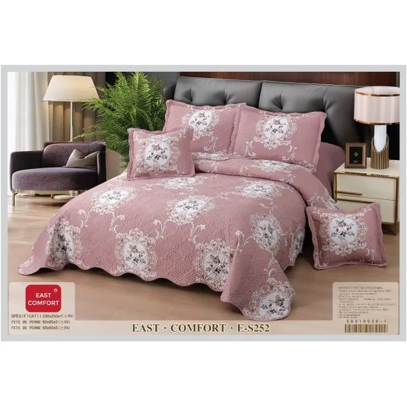 Cuvertura Pat din Bumbac este compusa din 5 piese si este realizata din bumbac 100%. Cuvertura de pat este rezistenta la spalari repetate. Pernele decorative creaza senzatia de confort si relaxare. Decoreaza dormitorul cu eleganta cuverturei de pat din bumbac.