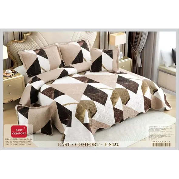 Cuvertura de pat matlasata, confectionata din bumbac tip tesatura finet.Imprimeul acestui set (cuvertura pat plus fete de perna) este