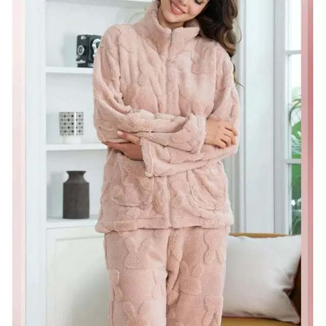 Setul de Pijama de Damă din 2 piese, realizat din material de tip Cocolino, este ideal pentru nopțile reci și pentru un confort maxim în timpul somnului. Acest set include o bluză cu mâneci lungi și o pereche de pantaloni lungi, ambele confecționate dintr-un material gros și pufos, de tip Cocolino, renumit pentru textura sa moale și capacitatea de a păstra căldura. Materialul este foarte delicat la atingere, oferind o senzație plăcută și relaxantă, perfectă pentru serile de relaxare acasă.