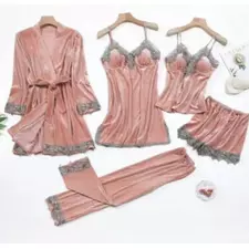 Setul Pijama de Dama 5 Piese Gri Petrol Din Catifea este o alegere perfectă pentru confort și eleganță în același timp. Acest set de lux este confecționat dintr-un material moale și catifelat, care vă va învălui în confortul său, oferindu-vă o experiență de purtat plăcută. Iată o descriere detaliată a fiecărei piese: