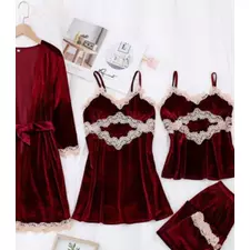 În ansamblu, Setul Pijama de Dama 4 Piese Gri Petrol Din Catifea vă oferă o combinație de confort și rafinament. Acesta este potrivit atât pentru relaxare acasă, cât și pentru a vă bucura de momente de liniște și odihnă într-o manieră stilată.