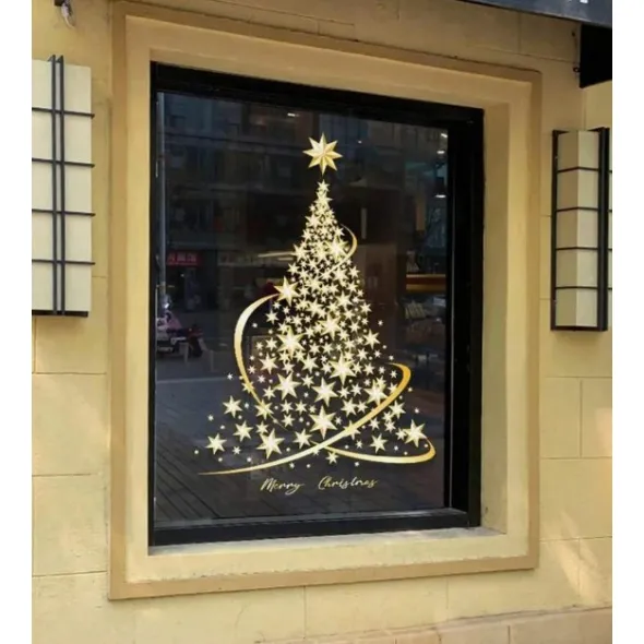 Sticker/Autocolant Craciun Brad Auriu 45x60cm - 366362
