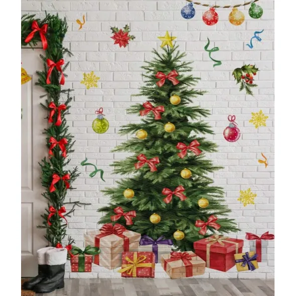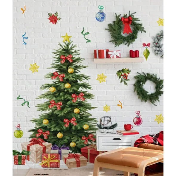 Sticker/Autocolant Craciun Brad si Cadouri 70x90cm - 695576