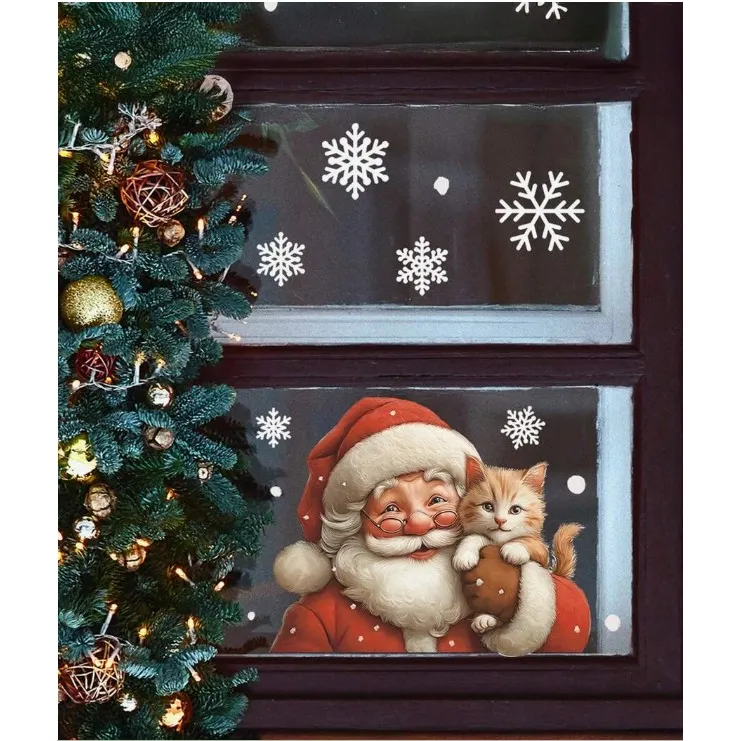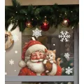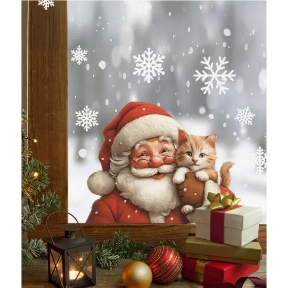 Sticker/Autocolant Craciun pentru geam sau Perete - Mos Craciun cu Pisica - 11x28cm - 980893