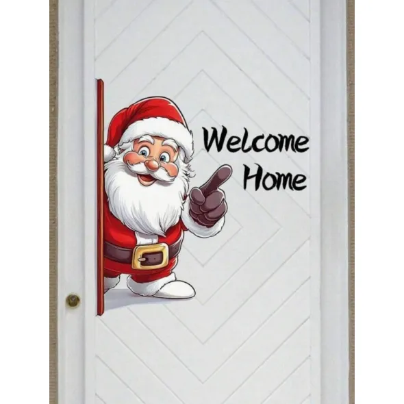 Sticker/Autocolant Craciun Welkome Home cu Mos Craciun 43x54cm - 893371