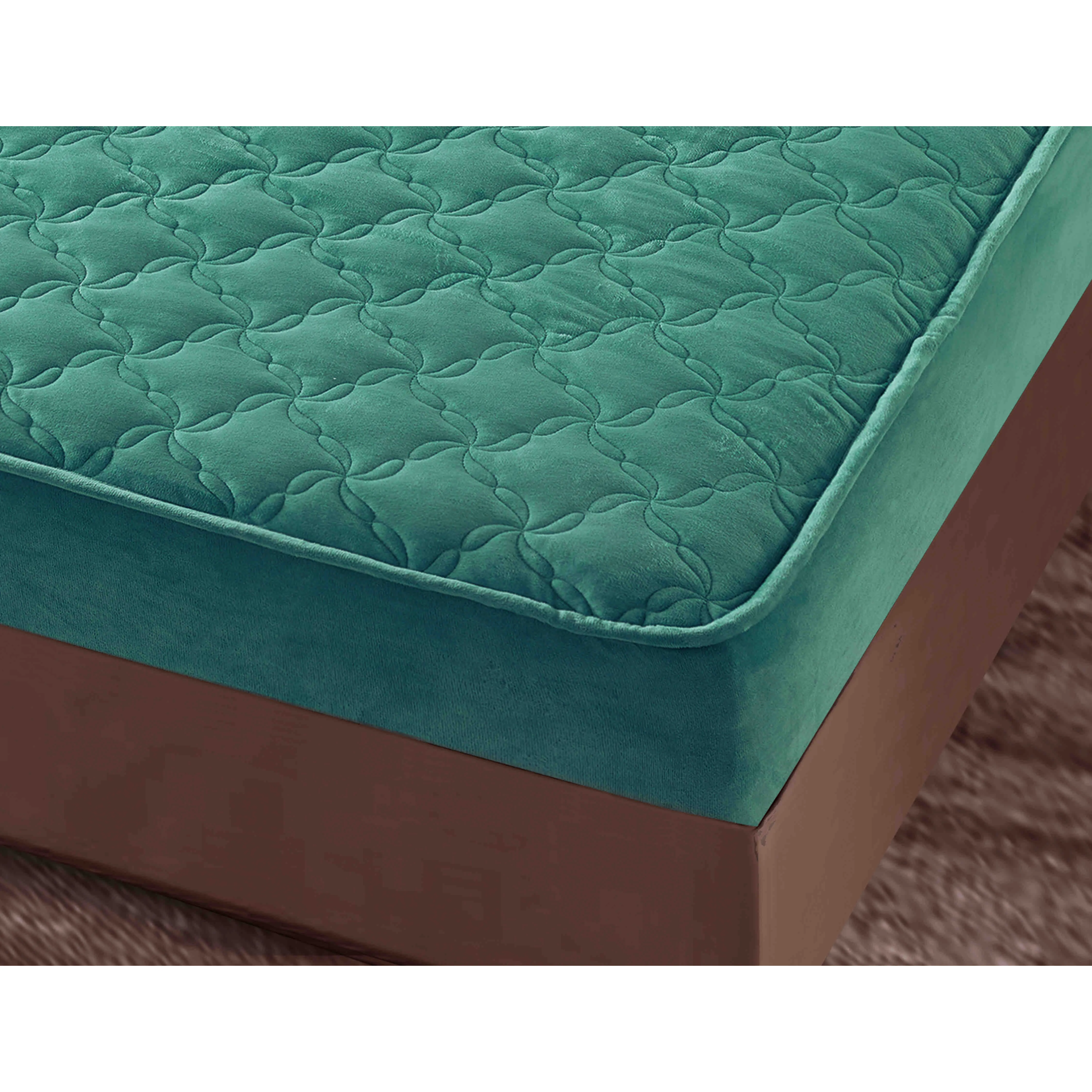 Topper Saltea/Husa de pat matlasata si 2 fete de perne din catifea, cu elastic, model tip topper 140x200 - JO853