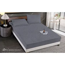 Topper Saltea/Husa de pat matlasata si 2 fete de perne din catifea, cu elastic, model tip topper 160x200 - SPR512