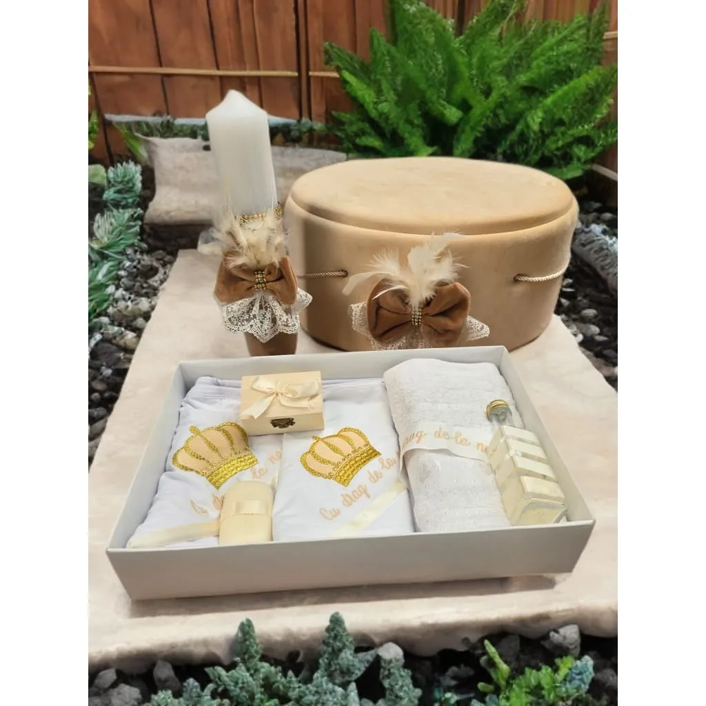 Deoarece botezul este un eveniment important pentru parinti si nasi, venim in ajutor cu un set care contine toate cele necesare pentru crestinarea bebelusului
